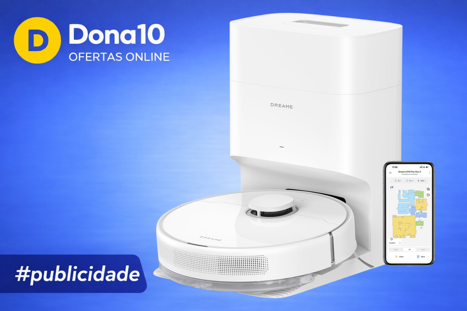DREAME D10 Plus Gen 2 Robô Aspirador e Mopa com Base de Autolimpeza para 90 Dias de Limpeza, Sucção de 6000 Pa e Navegação LiDAR, Desvio de Obstáculos, Conexão Wi-Fi, 127v