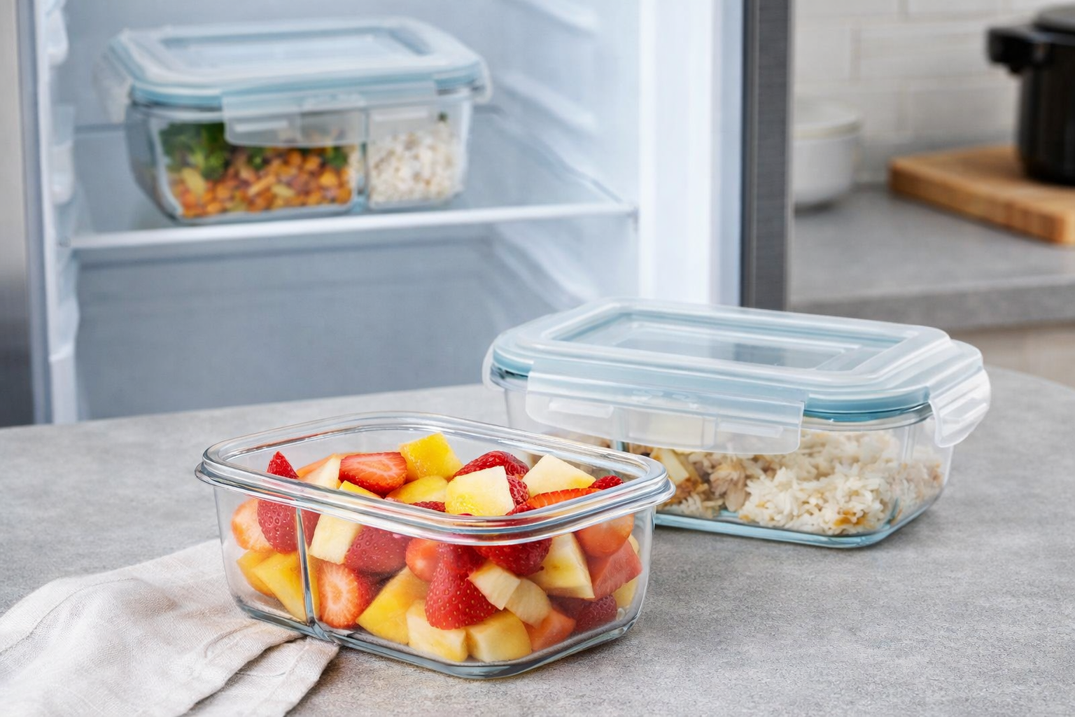 Conjunto 2 Potes Vidro Hermético Marmita Com 4 Travas 1040ml