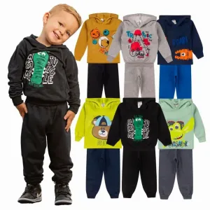 Kit 4 Peças Conjunto Moletom Infantil Menino Masculino Inverno Com Capuz Outono | Shopee Brasil