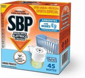 Repelente Elétrico Líquido SBP 45 Noites Cheiro Suave Novo Aparelho + Refil