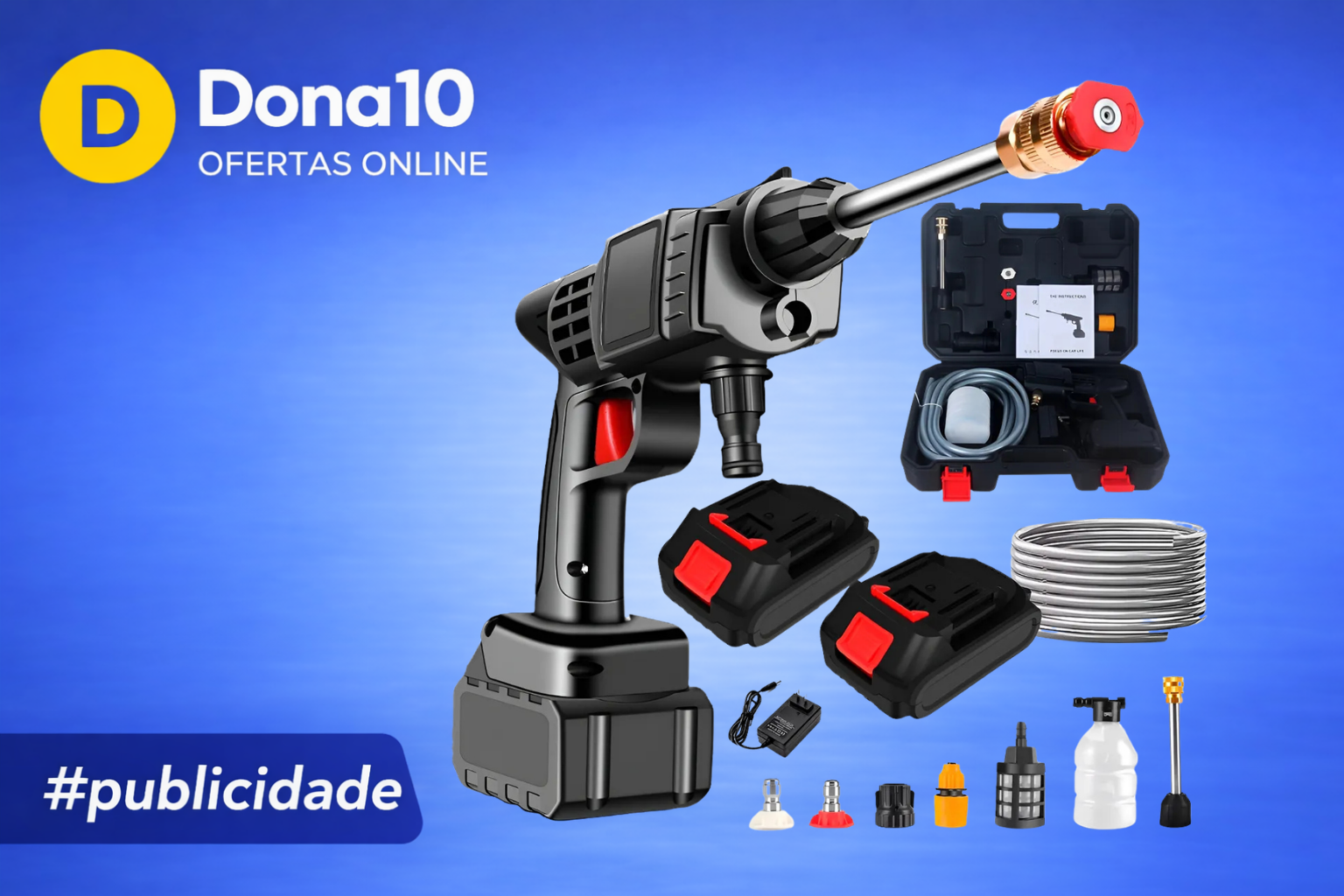 Lavadora Lava Jato Portátil Pressão 2 Baterias + Maleta